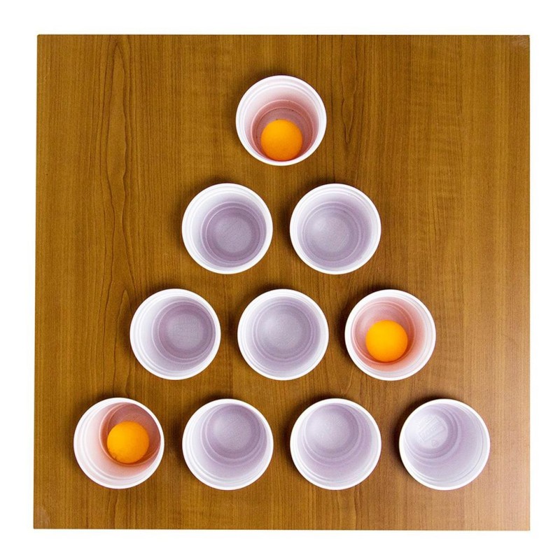 Här gäller det att träffa motståndarens koppar med pingpong bollarna. 2 kast per lag och omgång gäller, den kopp där bollen stannar kvar i plockas.