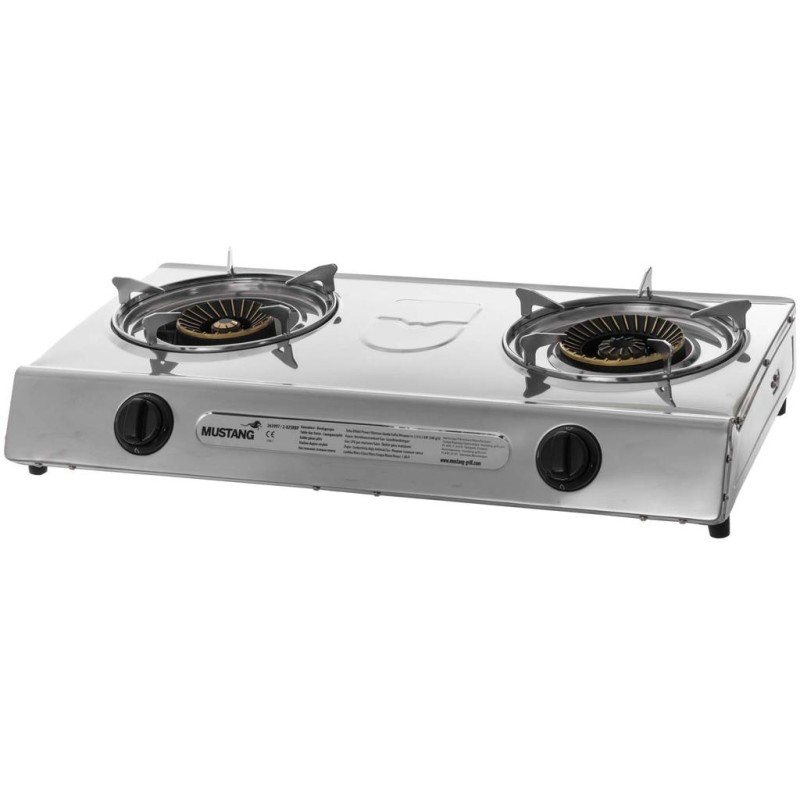 Ett gasolkök med två brännare och imponerande effekter på 3,4 kW (brännare Ø10 cm) och 4,3 kW (brännare Ø12 cm)