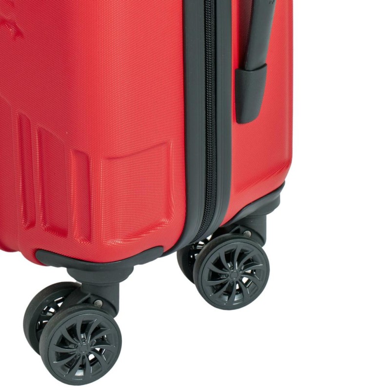 Genomtänkta detaljer som gör resandet smidigt och enkelt. Sköna bekväma gummerade bärhandtag gör den behaglig att bära. Fyra hjul gör den lättmanövrerad och bekväm att köra. Stabilt och snyggt draghandtag ger en distinkt "look" till väskan.