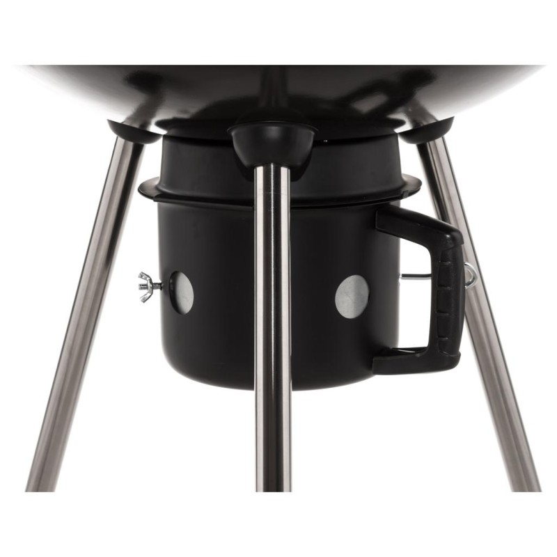 Porslinsemaljerat lock och grillskål. Under grillen finns en löstagbar askuppsamlare med inbyggd ventil.