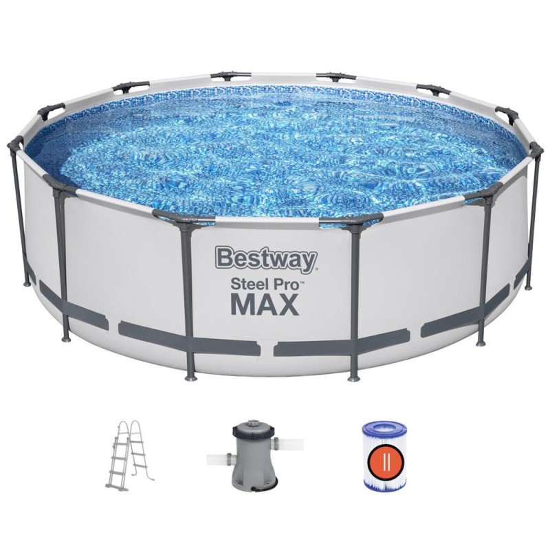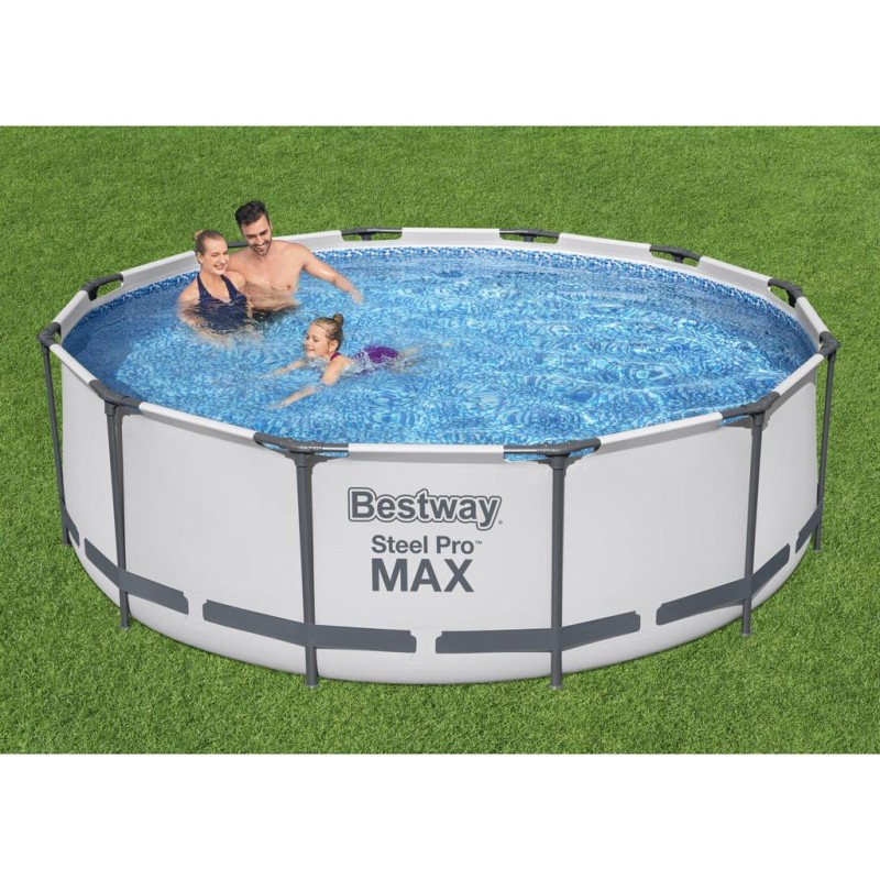 PERFEKT STORLEK FÖR FAMILJER: 3,66 m x 1,00 m rund Bestway Steel Pro MAX-pool rymmer 9.150 L vatten.