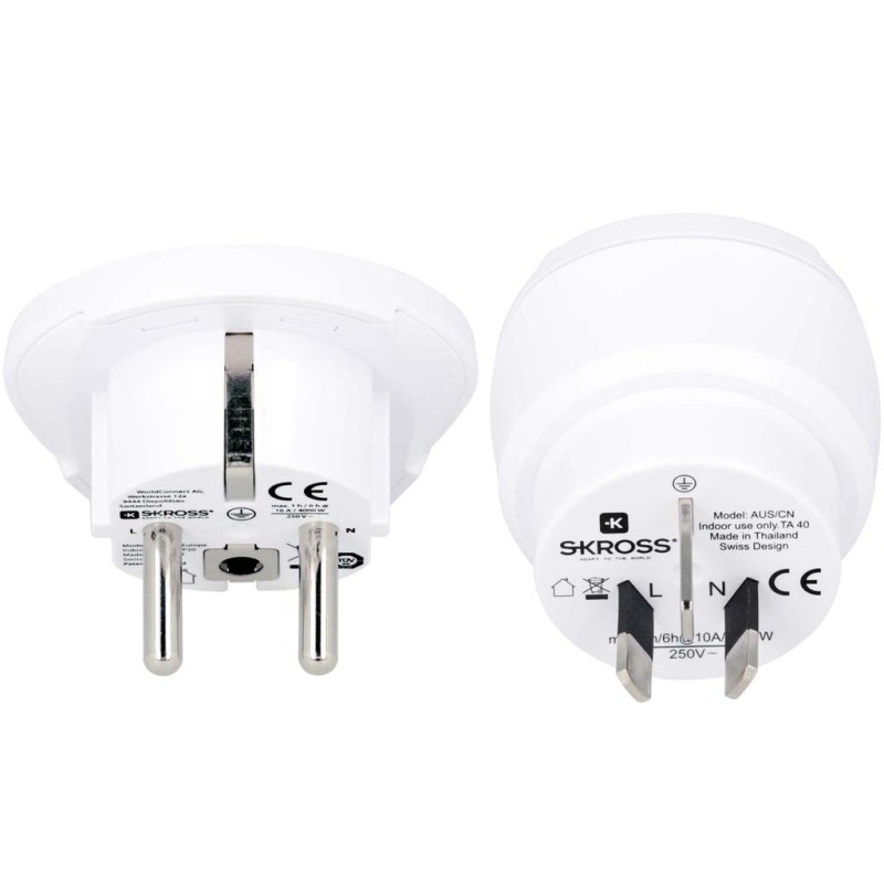 SKROSS® Combo World till Australien/Kina-adapter ger globala resenärer en säker, pålitlig och enkel anslutning i alla länder med australiensisk, kinesisk och Schuko-standard, vilket gör det till en idealisk lösning för affärs- och fritidsresenärer.