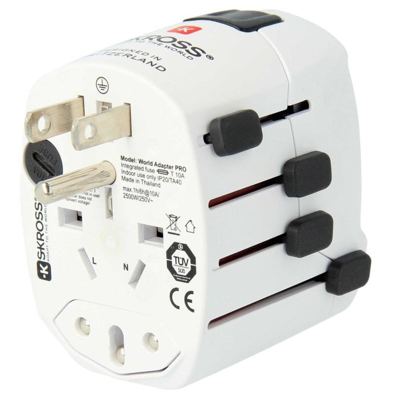 Den mångsidiga reseadaptern PRO – World säkerställer en enkel och säker anslutning av 2- och 3-poliga enheter från och till mer än 205 destinationer. Kan hantera en effekt på upp till, så att du till och med kan koppla in kraftfulla enheter som bärbara datorer eller resehårtorkar.