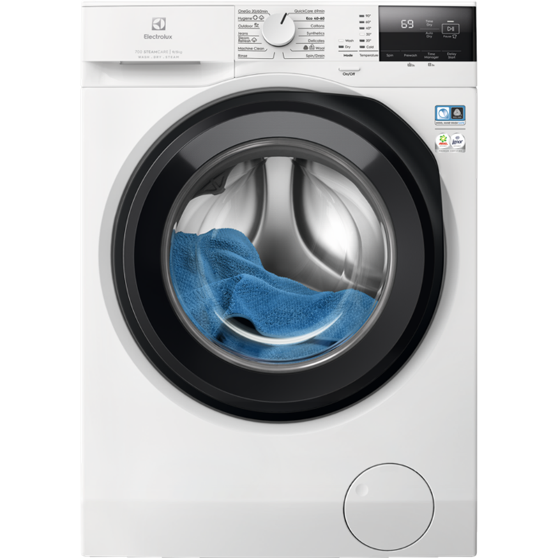 SteamCare 700, SteamCare, Energiklass: A - 5%, Energiklass Tvätt/Tork: D, Ljudnivå (dB): 72, Ljudklass: A, Kapacitet tvätt/tork: 9/5 kg, Woolmark Blue + WoolCare Ariel/Lenor, Max varv: 1400 varv/min, Motor: EcoInverter, Eco-ventil, Vattenkyld kondensering, Trumma: Care Drum/60 l, Mått (HxBxD)(mm): 847x597x576, Maxdjup: 599 mm