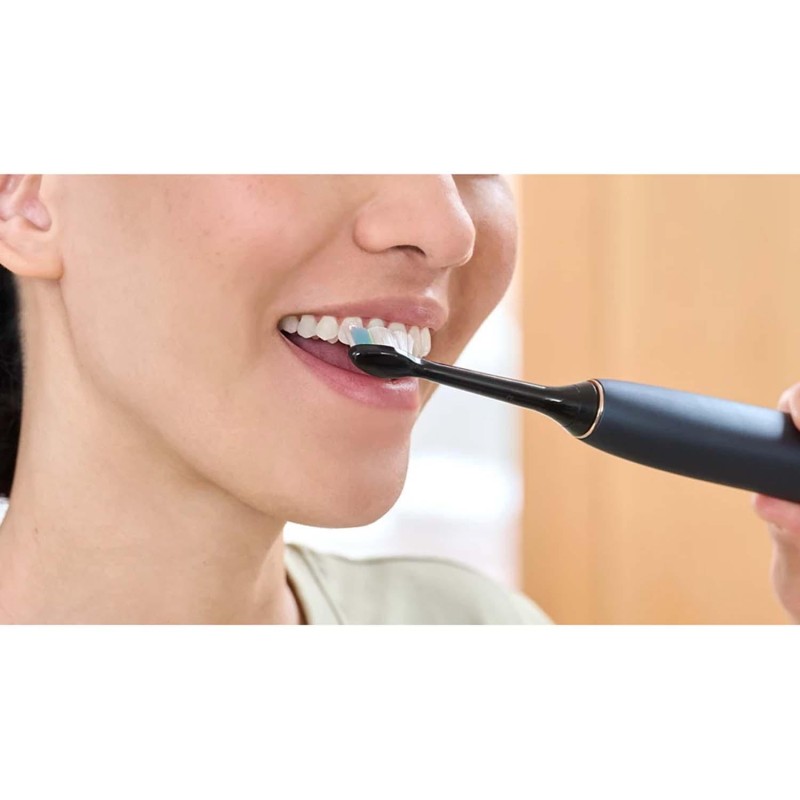 • Tar bort upp till sju gånger mer plack än en manuell tandborste