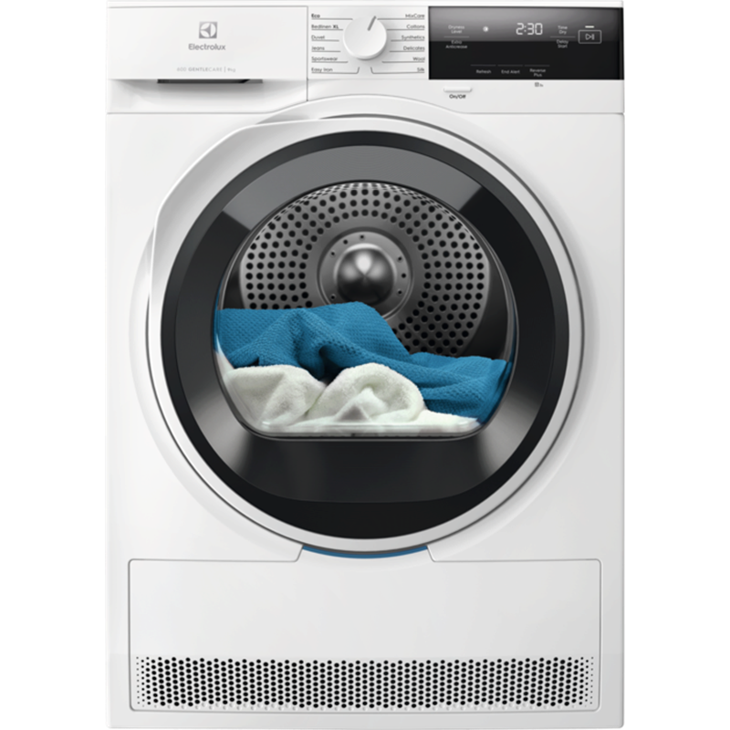 600 GentleCare, GentleCare, SensiCare, Energiklass: A+++, Tumlarkapacitet: 9 kg, Torkteknik: Värmepump, Ljudnivå: 64 dB(A), Motor: Standard, Trumma: Rostfritt stål/118 l, Mått (HxBxD)(mm): 850x596x636, Maxdjup: 659 mm