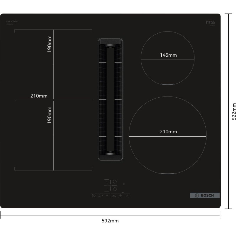 - Startset HEZ9VRUD0 för kolfilterdrift kräver en vertikal öppning på minst 25 mm bakom köksmöbelns bakpanel. För optimal prestanda föreslår vi 50 mm.