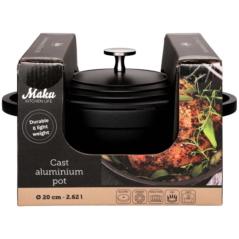 Denna gjutna aluminiumgrytan från Maku kombinerar slitstark kvalitet med smart design