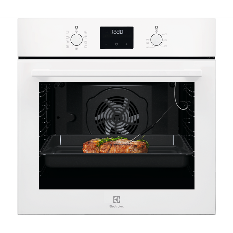Med Electrolux 600 SenseCook® får du en ugn som mäter matens innertemperatur och stänger av sig själv när allt är perfekt tillagat. Tack vare Multilevel Cooking kan du baka och laga mat på flera nivåer samtidigt med jämn värmefördelning. Och när du är klar? AquaClean ångrengöring gör städningen enkel – utan starka kemikalier.