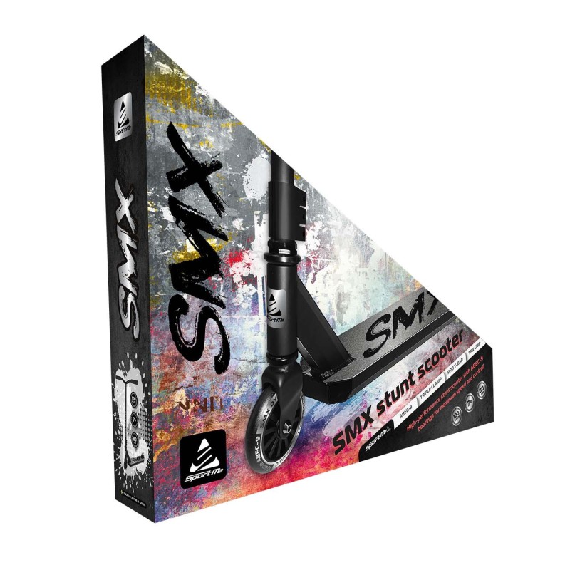 SMX Stunt Kickbike är en stabil och pålitlig trick-sparkcykel, framtagen för barn och unga som vill börja med stuntåkning. Med slitstarka komponenter, genomtänkt konstruktion och modern design ger den en trygg och rolig åkupplevelse – både i skateparken och på gården.