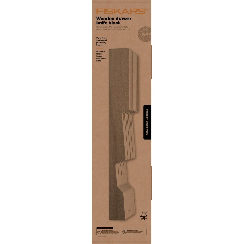 Gör plats på köksbänken och skydda dina bästa knivar med Fiskars lådinsats i trä