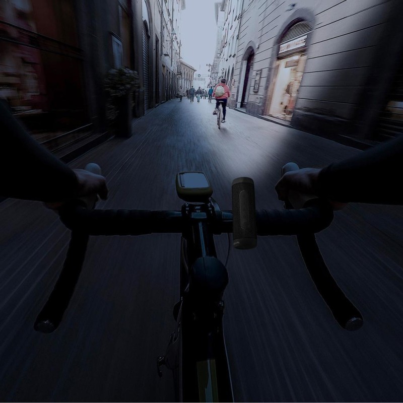 För att garantera maximal säkerhet när du cyklar på natten är SPEAKERBIKE utrustad med en kraftfull framlampa. Den trådlösa högtalaren levereras också med en powerbank-funktion med en kapacitet på 3600 mAh så att du kan ladda din enhet medan du är på språng.