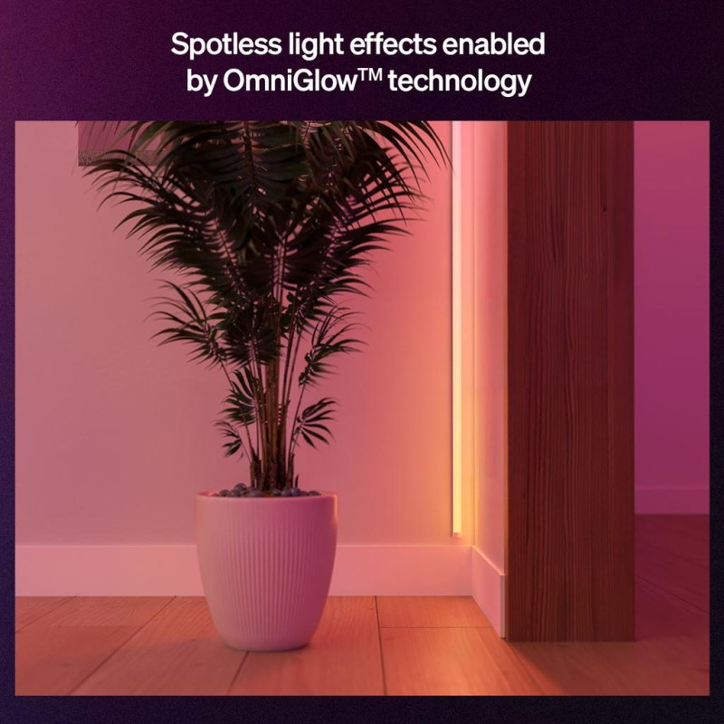 En ljusslinga som är gjord för att upplevas! OmniGlow ger enhetlig, ultraklar färg och rent vitt ljus utan synliga LED-punkter – tack vare den senaste OmniGlow-tekniken. Vårt mästerverk är specialdesignat för att ge stämningsfull och högkvalitativ funktionell belysning i köket, vardagsrummet, sovrummet och trappan. Få supersmidiga dynamiska och mer naturliga effekter med microLED-lampor som aktiveras av CSP (Chip-scale-package). Anpassa ljusscener personligt med Hue-appen och röststyrning.