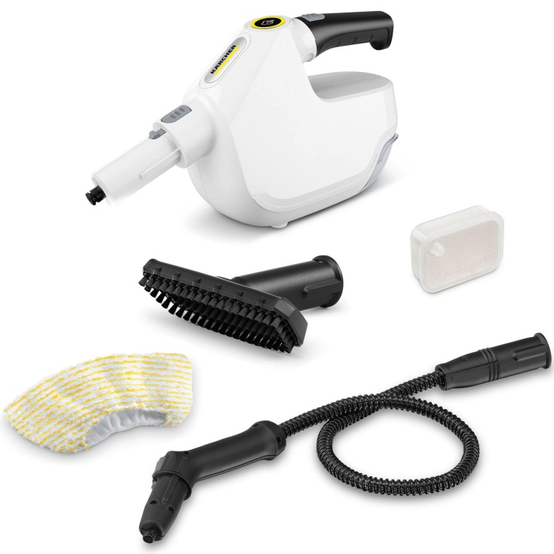 Den kompakta handhållna ångtvätten SC 1 Multi Comfort rengör utan kemikalier och är redo för djupgående rengöring på ett ögonblick
