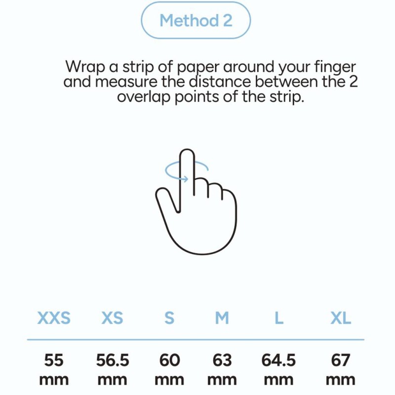 Storlekar: XXS (17,5mm), XS (18,1 mm), S (19,1 mm), M (20 mm), L (20,6 mm), XL (21,4 mm)