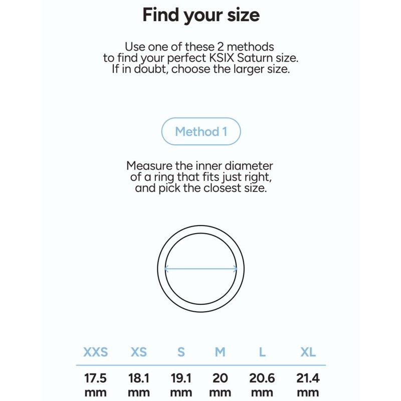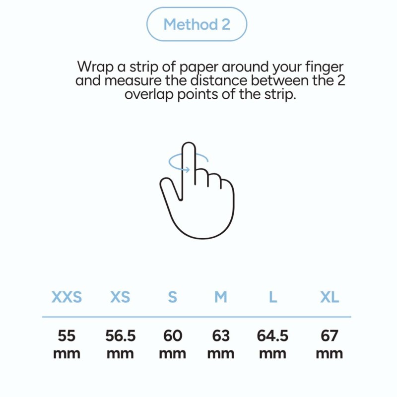 Storlekar: XXS (17,5mm), XS (18,1 mm), S (19,1 mm), M (20 mm), L (20,6 mm), XL (21,4 mm)