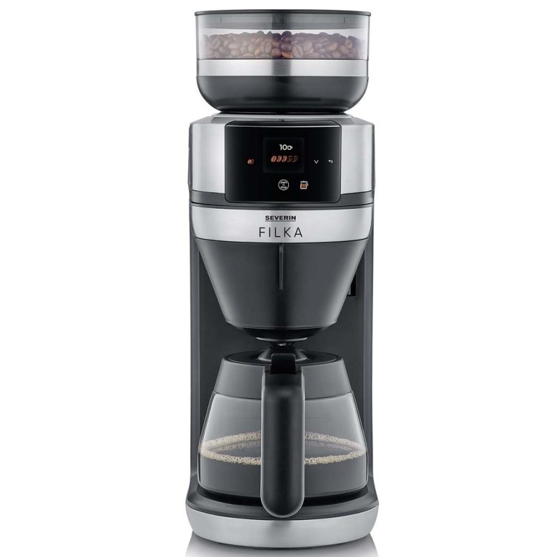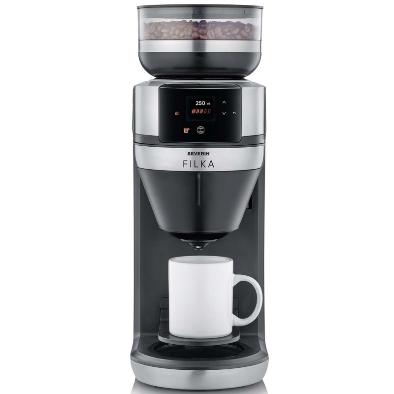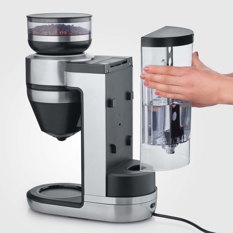 Den tystgående kvarnen maler bönorna precis lagom så att du kan njuta av färskmalet kaffe. Dessutom doserar kaffebryggaren rätt mängd vatten från den rymliga vattentanken på 2 liter och brygger kaffet med en optimal bryggtemperatur på 96°C, vilket ger dig ett rykande hett kaffe rakt ned i koppen.