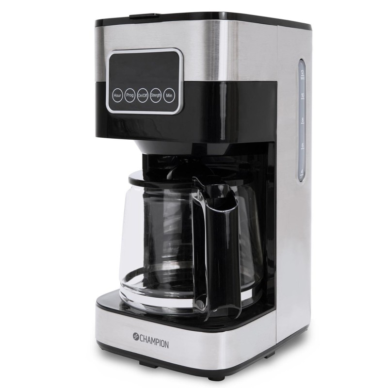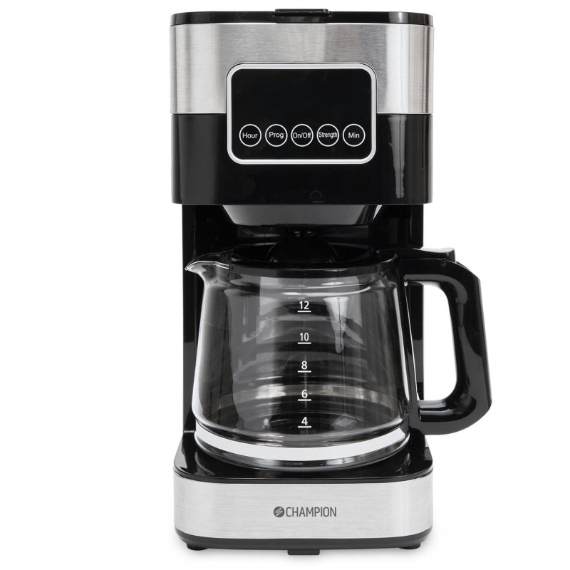 Med Champions digitala kaffebryggare kan du vakna upp till nybryggt kaffe varje morgon - fyll på med kaffe och vatten kvällen innan och ställ in timern på önskad tillagningstid. Kannan rymmer 12 koppar och bryggaren är utrustad med varmhållning och automatisk avstängning. På den tydliga LCD-displayen ser du hur mycket klockan är samt information om eventuellt inställd timer.