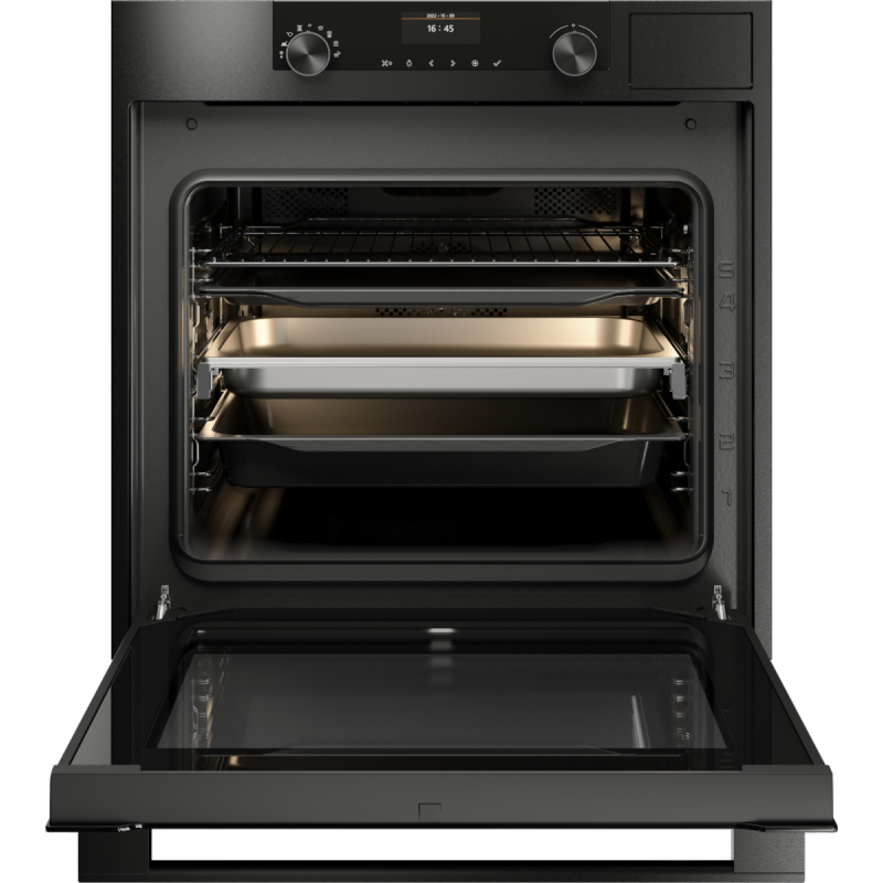 Denna kombiångugn i svart stål har allt du behöver för ångkokning och gör det möjligt för dig att ha ett verktyg som många kockar anser vara oumbärligt i ditt hem. Ta fram nya smaker genom att laga mat med ånga och varmluft, eller tillaga riktigt hälsosam mat med bara ånga. Vi har förberett 160 automatiska program som hjälper dig få perfekta resultat varje gång. Ugnen har en TFT-färgskärm på 2,9” och oändliga matlagningsmöjligheter.