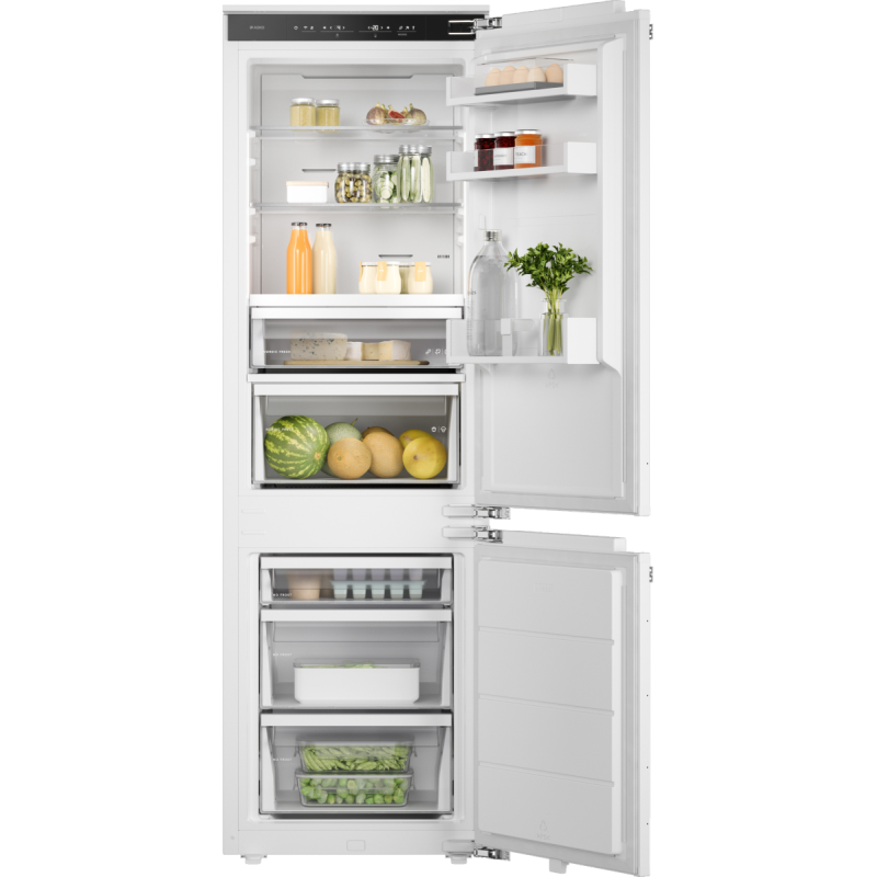 Att upprätthålla rätt luftfuktighet är avgörande för både hygien och fräschhet. Den automatiska fuktighetsregleringen säkerställer optimal fuktighet i lådan för frukt och grönsaker. Det lättrengjorda fuktmembranet reglerar luftfuktigheten. Membranet öppnas automatiskt för att minska överflödig fuktighet eller höjer den när den är för låg, vilket förhindrar att dina produkter torkar ut eller ruttnar, så att de håller sig fräscha och välsmakande.