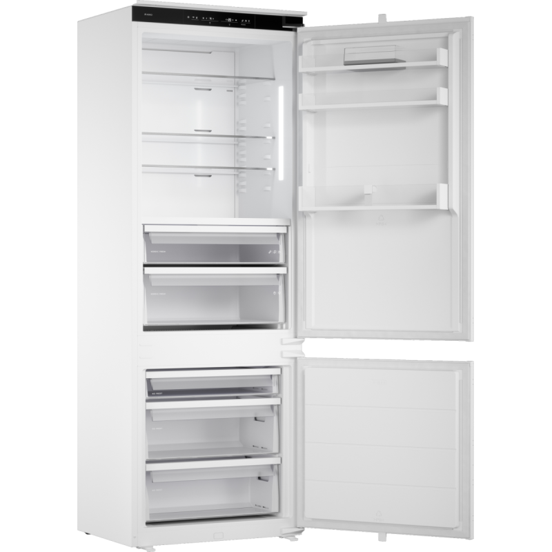 Att upprätthålla rätt luftfuktighet är avgörande för både hygien och fräschhet. Den automatiska fuktighetsregleringen säkerställer optimal fuktighet i lådan för frukt och grönsaker. Det lättrengjorda fuktmembranet reglerar luftfuktigheten. Membranet öppnas automatiskt för att minska överflödig fuktighet eller höjer den när den är för låg, vilket förhindrar att dina produkter torkar ut eller ruttnar, så att de håller sig fräscha och välsmakande.