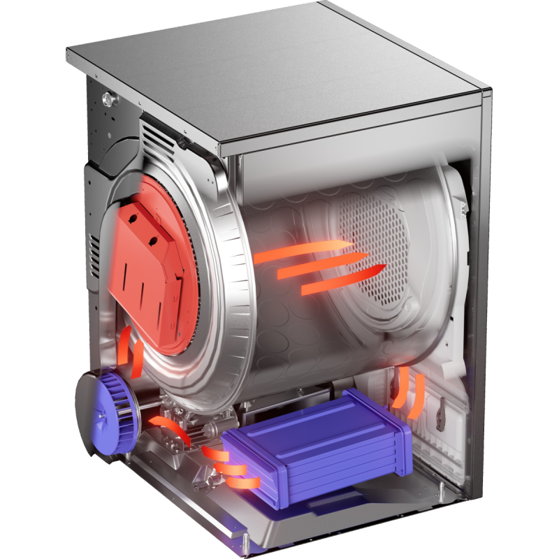 Andra torktumlare använder en ”omvänd” torkningsprocess, vilket innebär att torktumlaren hela tiden ändrar riktning. Våra torktumlare tumlar tvätten i en åtta. Varsamt, oavbrutet och i en enda riktning utan att kläderna klumpar ihop sig. Detta är även skonsamt för bandet och motorn, vilket ger ökad hållbarhet. Air Lift™-paddlarna är utformade för att lyfta lasten så högt som möjligt och öka tiden i luftflödet. Det förhindrar att kläderna buntas samman och är skonsamt mot dina kläder: kläderna tumlas i en åtta; Air Lift™-paddlarna är utformade för att lyfta lasten så högt som möjligt och öka tiden i luftflödet; förhindrar att kläderna buntas samman; är skonsam mot dina kläder.