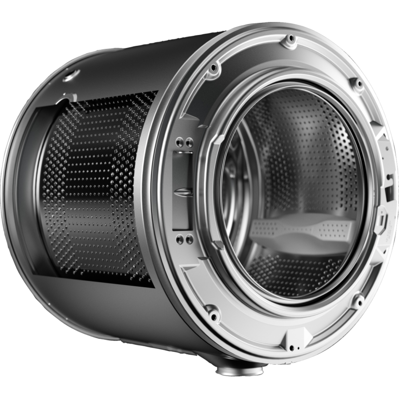 Yttertrumman i en ASKO Professional-tvättmaskin är tillverkad i slitstarkt rostfritt stål. Varför? Eftersom den blir tåligare, har högre kvalitet och gör det möjligt att tvätta vid högre temperaturer och centrifugera med högre hastighet. Även de främre och övre plåtarna är tillverkade i rostfritt stål.