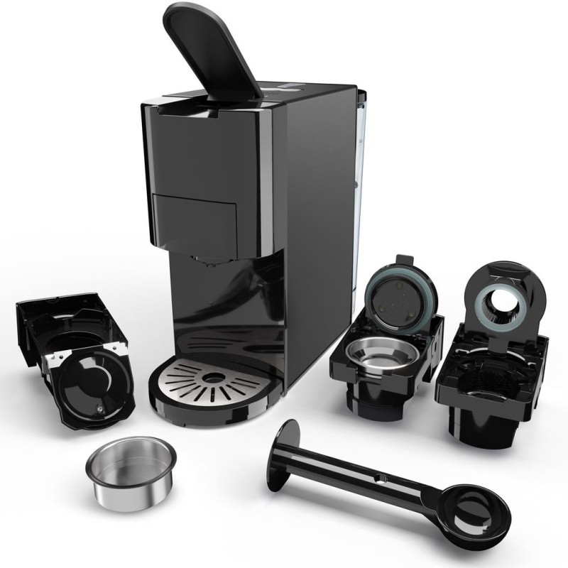 Kaffemaskin för flera kapslar som kan användas med flera olika typer av kapslar, som Nespresso® och Dolce Gusto®.