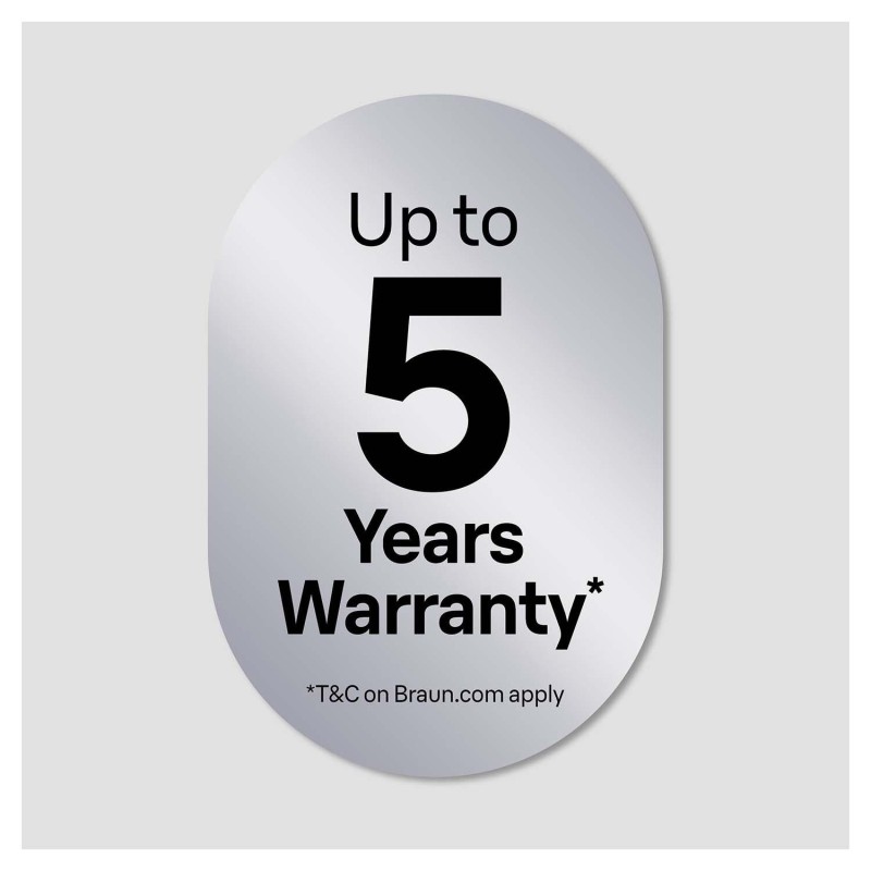 Förlängd garanti. Registrera din produkt för 5 års garanti, se villkor och bestämmelser på se.braun.com/en/warranty-extension-se.