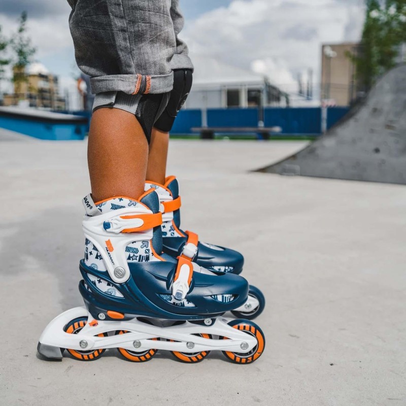 Smidiga och stabila inlines som växer med barnet och kan justeras upp till fyra skostorlekar med ett enkelt knappsystem
