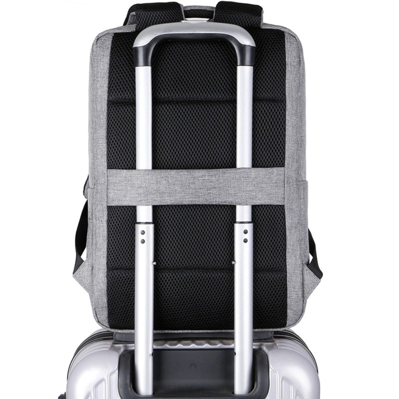 De vadderade axelremmarna ger hög komfort även vid längre användning, och den förstärkta bagageremmen på baksidan gör att ryggsäcken enkelt kan fästas på en resväska med hjul.