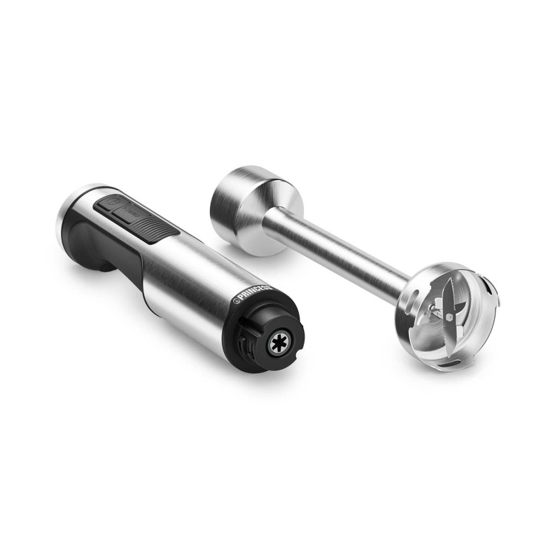 Extremt kraftfull och stark stavmixer med 1500 W motor och extra lång avtagbar stav i rostfritt stål på 50 cm. Designad med en kniv i rostfritt stål med 4 blad och mätkopp med lock/anti-slip funktion.