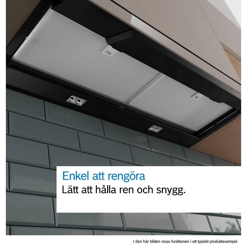 Enligt EN 61591 och EN/IEC 60704-2-13 kan din produkt uppnå följande värden i cirkulationsläge med Long-life Clean Air-återcirkulationskit (finns som tillbehör): Läge 1: utsugningskapacitet 333 m3/t; Ljudnivå 61 dB(A) re1pW Läge 2: utsugningskapacitet 441 m3/t; Ljudnivå 68 dB(A) re1pW Läge 3: utsugningskapacitet 521 m3/t; Ljudnivå 72 dB (A) re1pW