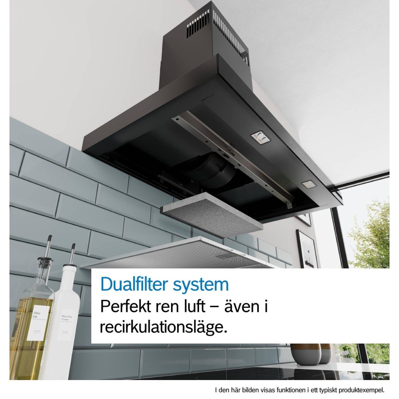 Smart Hood Automatic: Köksfläkten anpassar automatiskt fläkthastigheten tack vare att hällen kontinuerligt tillhandahåller matlagningsdata (fungerar med alla nuvarande induktionshällar i serie 6; för andra Home Connect-hällar kan köksfläkten styras direkt från hällen, förutsatt att ett anslutet Home Connect-konto finns tillgängligt).
