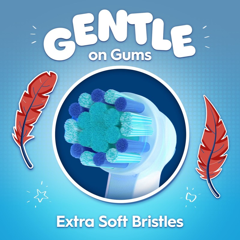 Oral-B Pro Kids eltandborste rekommenderas av tandläkare för barn som är tre år eller äldre och erbjuder en skonsam och effektiv rengöring. Med 2 borstningslägen inklusive ett unikt, barnvänligt mjukt läge rengör den här borsten skonsamt barntänder. Den avlägsnar mer plack än en vanlig manuell tandborste. Med 4 temaklistermärken så att du kan anpassa handtaget.