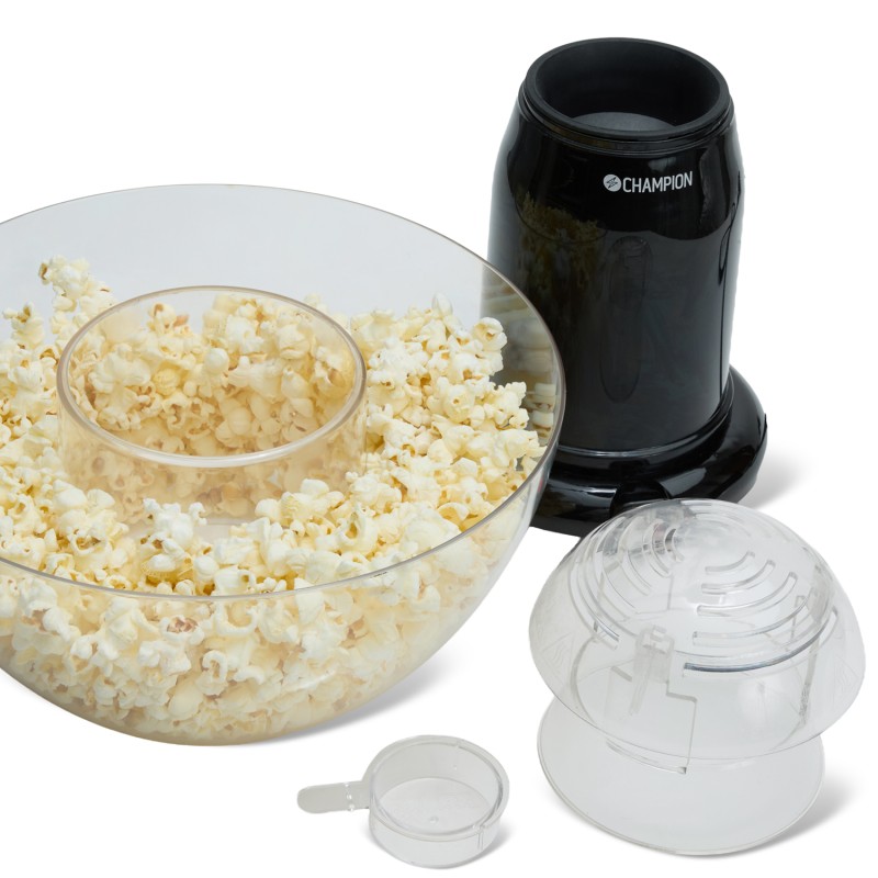 Champion Popcornmaskin Pop-in-Bowl PCM300 är för perfekt dig som uppskattar knaprigt goda popcorn. Tack vare maskinens varmluftsteknik tillagas popcornen helt utan olja eller smör, vilket gör popcornen lite nyttigare. Pop-in-Bowl kommer med en avtagbar bunke, när popcornen är färdiga lyfter du bara av skålen och kan avnjuta dina nylagade popcorn. Att använda maskinen är superenkelt, häll bara i dina popcorn och starta maskinen, efter några minuter har de varma popcornen landat i den avtagbara skålen och är redo att avnjutas.
