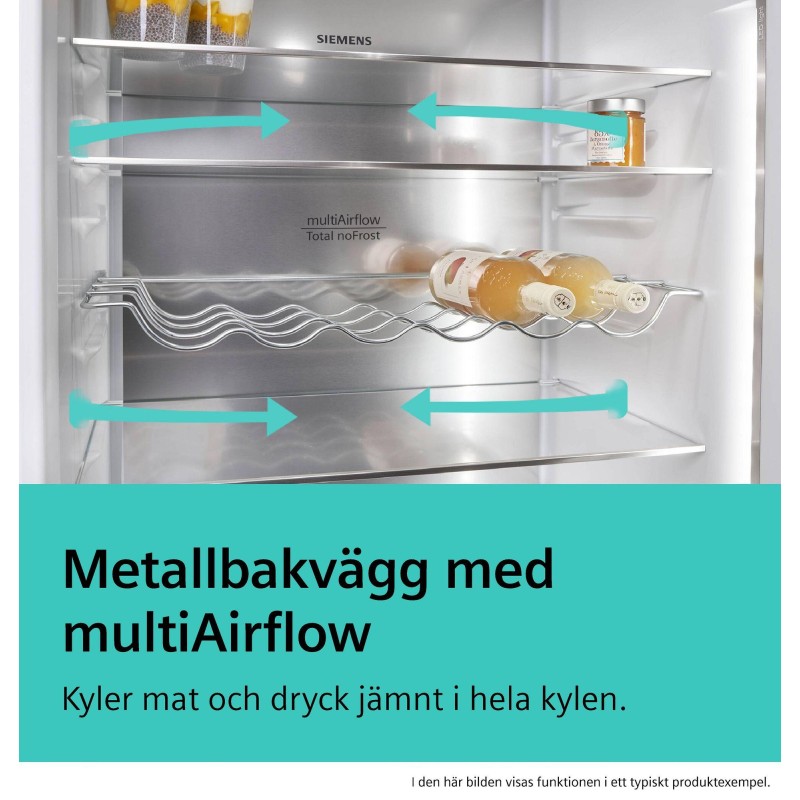 Metallbakvägg med multiAirflow: Jämnt kylda livsmedel och drycker på alla nivåer.