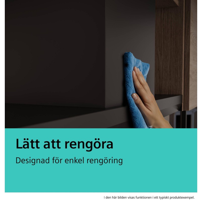 Distanser medföljer för montering i väggskåp med maxdjup upp till 360 mm.