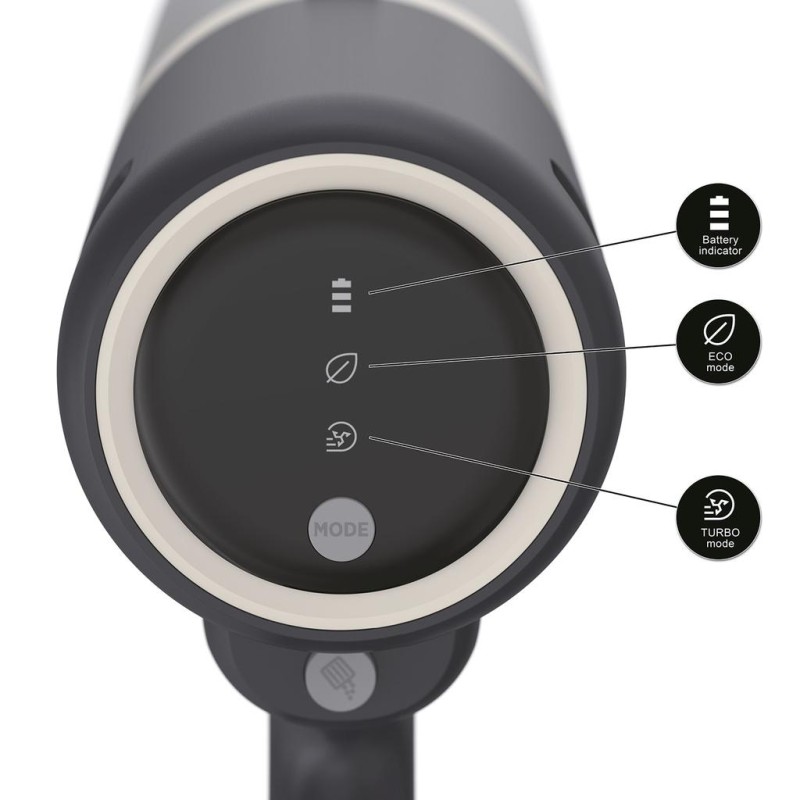 Beroende på hur smutsigt ytan är så kan man välja två effektlägen: Turbo eller Eco