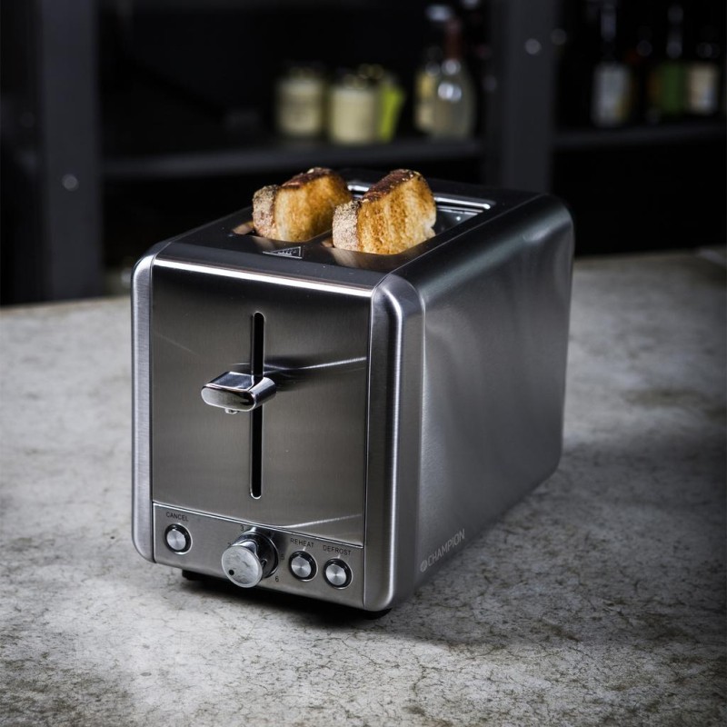 Champions brödrost ger gyllene rostat bröd för familjens lugna morgonstunder. Med 6 ställbara värmenivåer väljer du enkelt den nivå av rostning du önskar. Med en stilren designen i rostfritt stål blir brödrosten en fin detalj i köket. Brödrosten rymmer 2 brödskivor per rostning och har funktioner för upptining samt återuppvärmning.