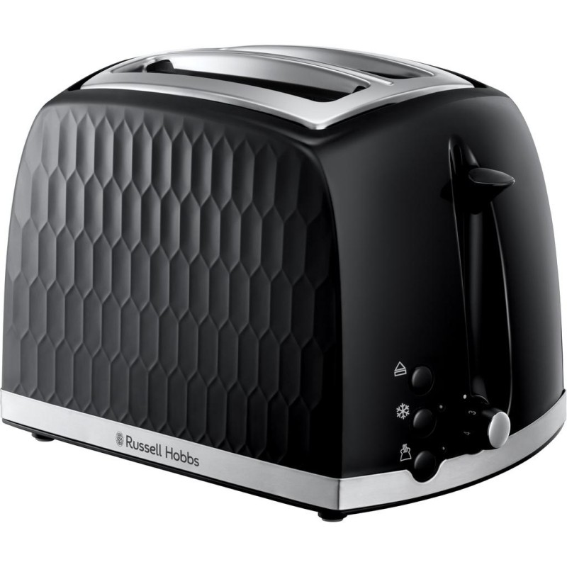 Med en unik texturerad design i plast och kromaccenter kommer Honeycomb brödrost att liva upp ditt kök