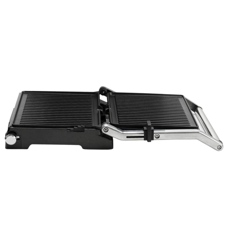 Med Paninigrill Pro grillar du enkelt läckra paninis, stora smörgåsar och annan välsmakande mat som hamburgare eller kyckling. Resultatet blir jämnt och krispigt tack vare de flexibla gångjärnen som anpassas efter höjden på maten, den justerbara termostaten och den jämna värmefördelningen. Förvandla enkelt grillen till en bordsgrill vilket ger dig två grillplattor i bredd, perfekt när du vill grilla till många. PFAS fria Non-stickbeläggning på grillplattorna underlättar vid rengöring. Torka av plattorna, töm behållaren på fett och smulor och är du redo för nästa grillning.