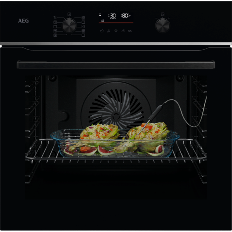 SurroundCook with SteamBake, EXPlore, Wi-Fi, Energiklass: A+, Volym: 71 l, Matlagningstermometer: Alarm med avstängning, Kontrollpanel: Pop in/out Vred, Pyrolysrengöring, SoftClosing-lucka, Timer Start/stop-funktion, Temperaturspann: 30°C - 300°C, Färg: Svart, Displayfärg: Vit, Teleskopskenor: Tillval, Inbyggnadsmått (HxBxD)(mm): 590x560x550, Produktmått (HxBxD)(mm): 594x595x567.
