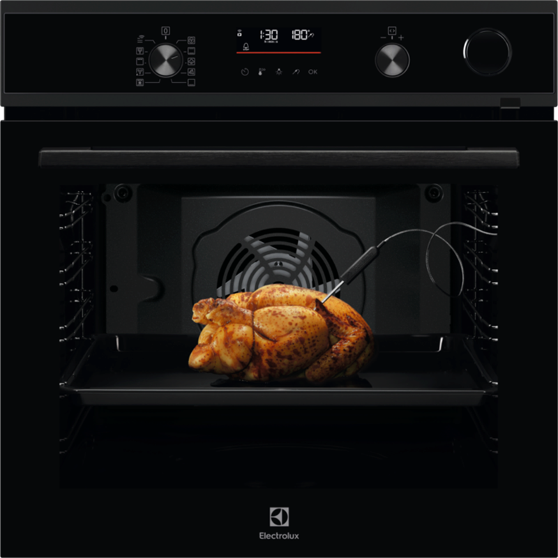 MealAssist with SteamCrisp, EXPlore, Wi-Fi, Energiklass: A++, Volym: 72 l, Matlagningstermometer: Alarm med avstängning, Kontrollpanel: Pop in/out Vred, Pyrolysrengöring, SoftClosing-lucka, Temperaturspann: 30°C - 300°C, Färg: Pure black, Displayfärg: Vit, Teleskopskenor: Tillval, Inbyggnadsmått (HxBxD)(mm): 590x560x550, Produktmått (HxBxD)(mm): 594x596x569.