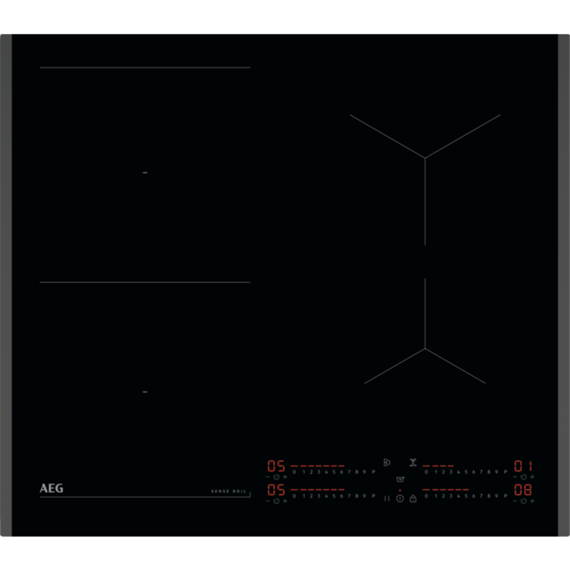 SenseBoil, 60 cm, Induktionshäll, Active Slider, Displayfärg: Röd, Hob²Hood, Bridge-funktion, Timer, ECO-timer, Stop&Go -funktion, Ram: Glaset fasat på 2 sidor, Installation: Ovanpåliggande, Inbyggnadsmått (BxDxH)(mm): 560x490x44, Produktmått (BxDxH)(mm): 590x520