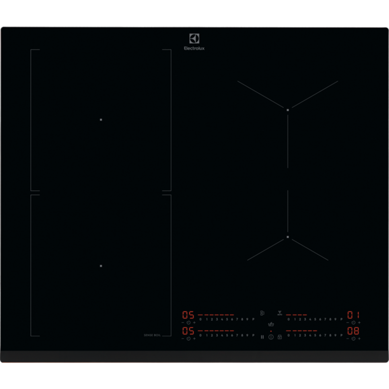 SenseBoil, 60 cm, Induktionshäll, Active Slider, Displayfärg: Röd, Hob²Hood, Bridge-funktion, Timer, ECO-timer, Stop&Go -funktion, Ram: Glaset fasat i framkant, Installation: Ovanpåliggande, Inbyggnadsmått (BxDxH)(mm): 560x490x44, Produktmått (BxDxH)(mm): 590x520