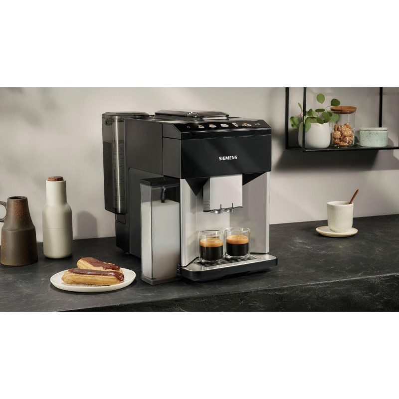 Siemens - TQ513R01 - Helautomatisk kaffemaskin, EQ500 integral, Dagsljus silver, Pianosvart