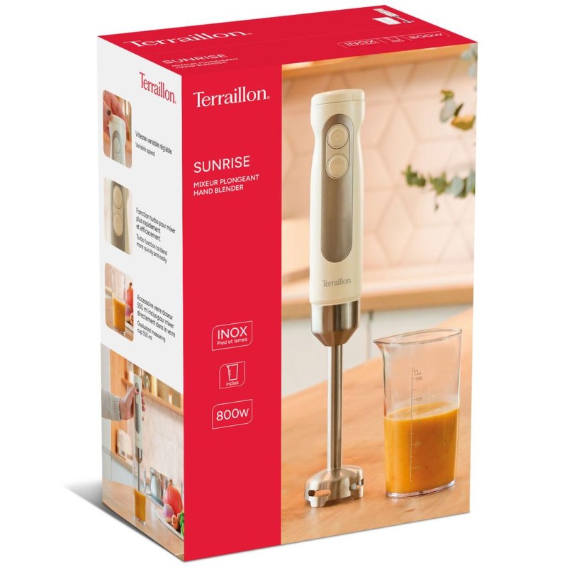 Med sin raffinerade design och sofistikerade krämfärg utgör denna stavmixer den perfekta föreningen av form och funktion. Den smala silhuetten och de rena linjerna gör den både modern och tidlös, och den smälter harmoniskt in i alla inredningar.