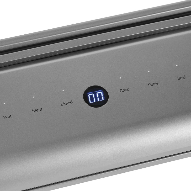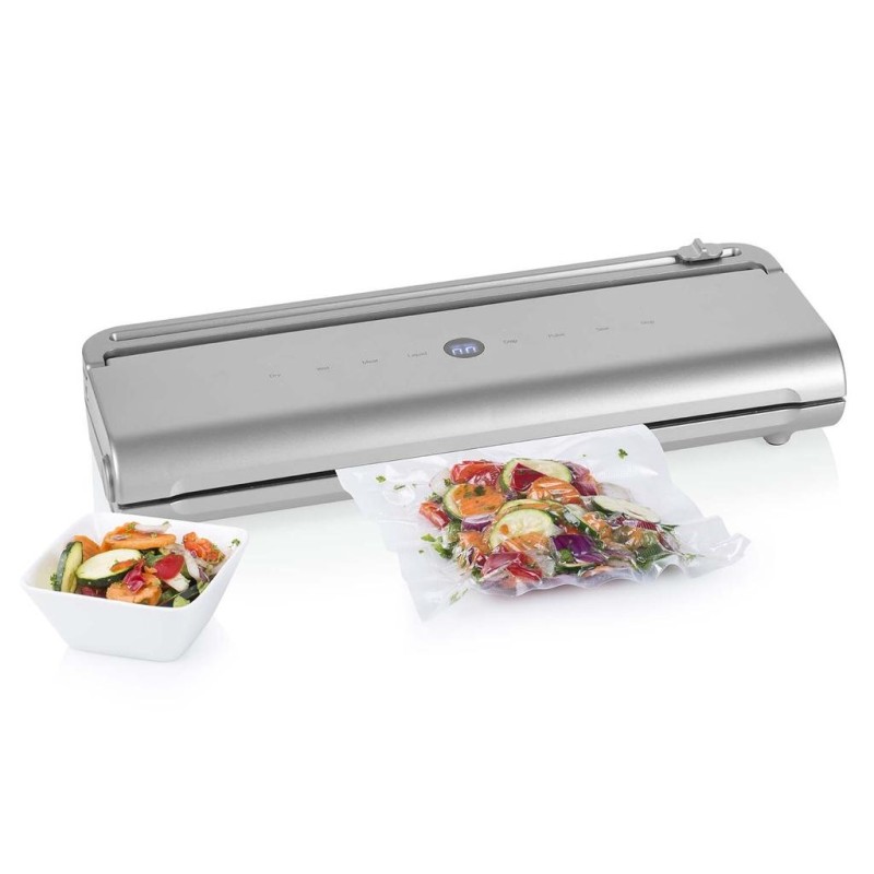 5 funktioner, inbyggd skärare, avtagbar kammare, 7–10 s (torr), 11–14 s (våt) försegling.